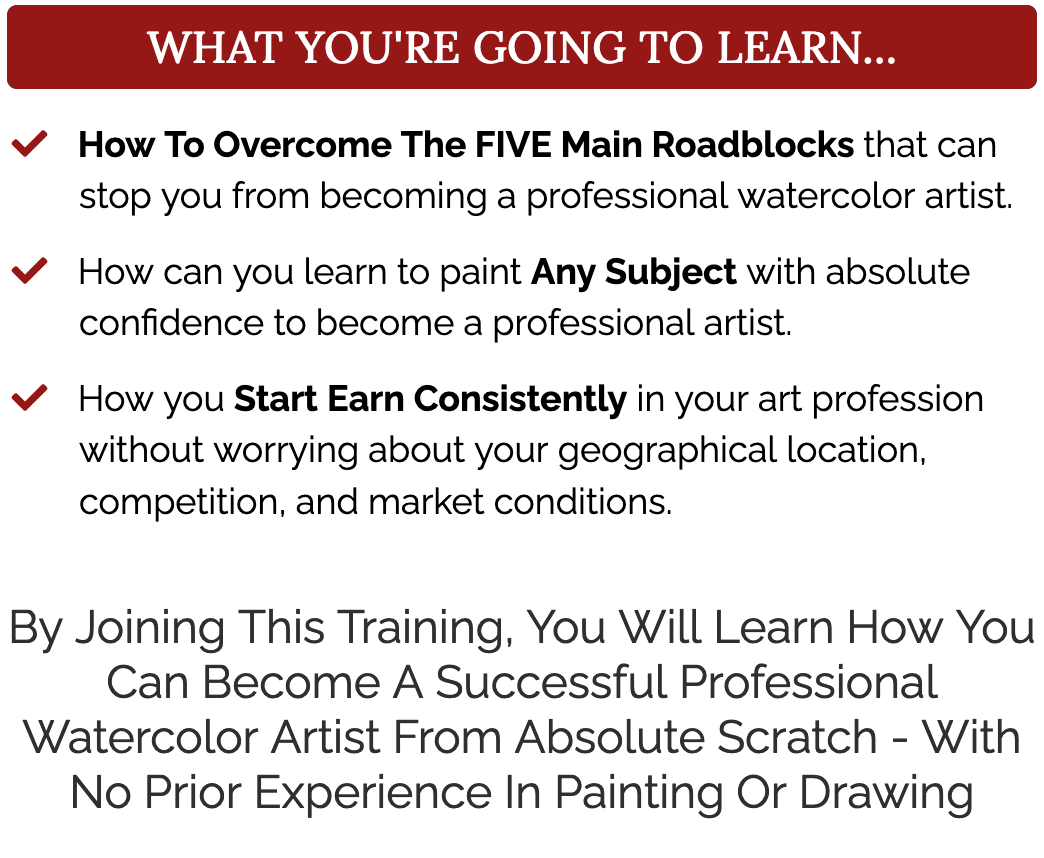 By Joining This Training, You Will Learn How You Can Become A Successful Professional Watercolor Artist From Absolute Scratch - With No Prior Experience In Painting Or Drawing
